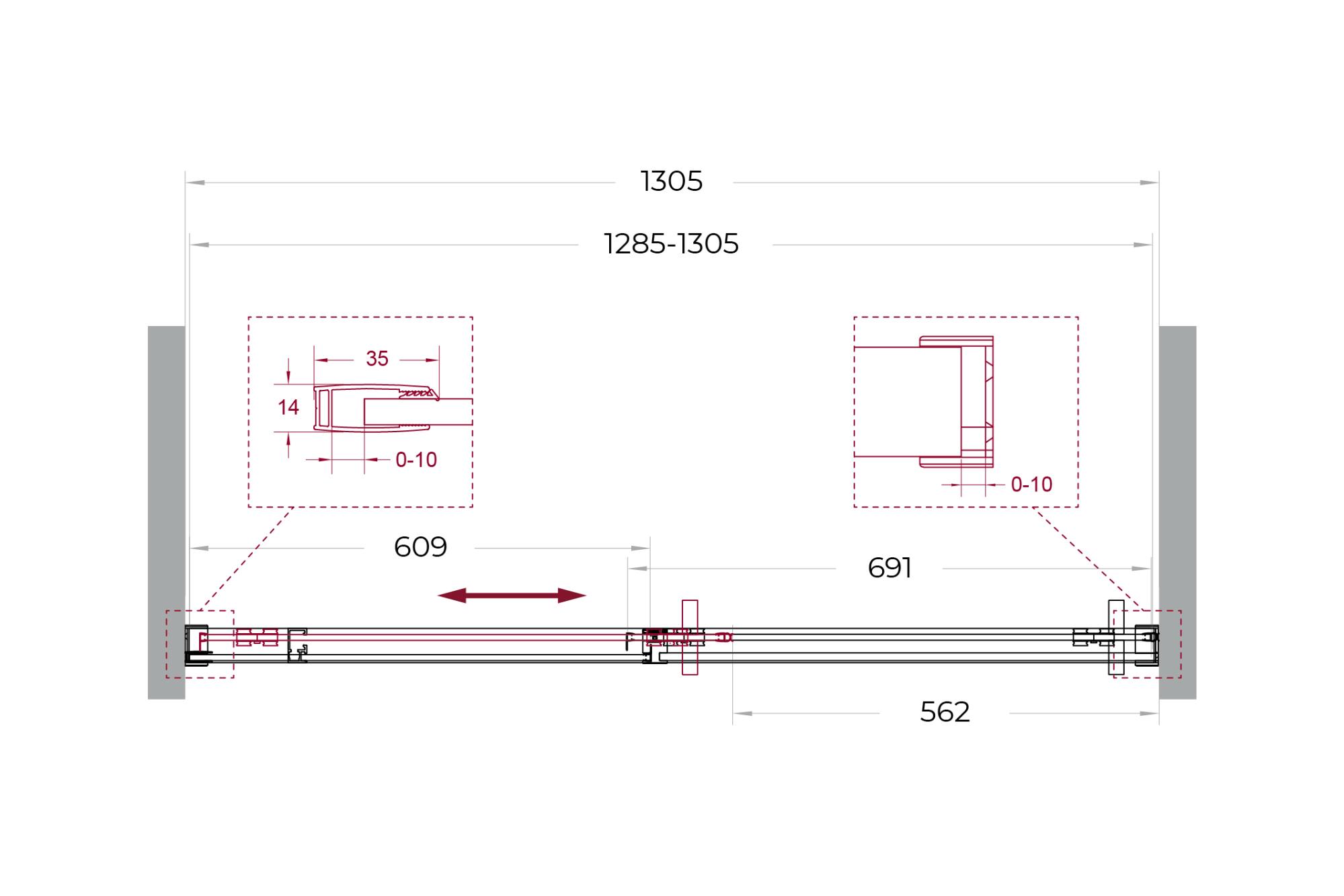 Система подвески: Двойные навесные ролики из нержавеющей стали с держателем стекла обеспечивают плавное движение створки, ее устойчивость и отсутствие перекосов.