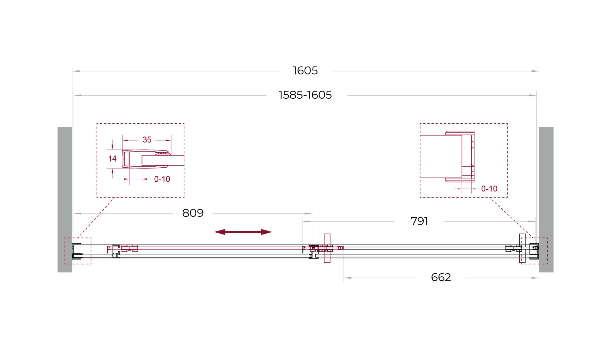 Система подвески: Двойные навесные ролики из нержавеющей стали с держателем стекла обеспечивают плавное движение створки, ее устойчивость и отсутствие перекосов.