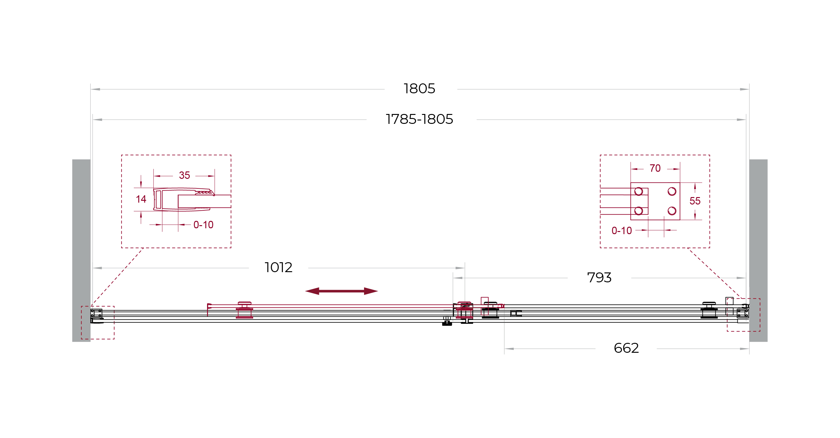 Надёжная фурнитура: раздвижная конструкция на роликах увеличенного диаметра из нержавеющей стали.