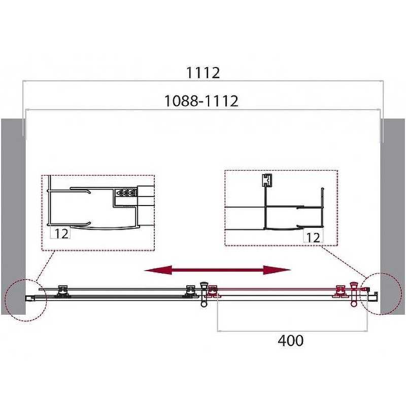 Душевая дверь Belbagno Uno 111x195 стекло прозрачное с рисунком, профиль хром (UNO-195-BF-1-110-C-Cr)