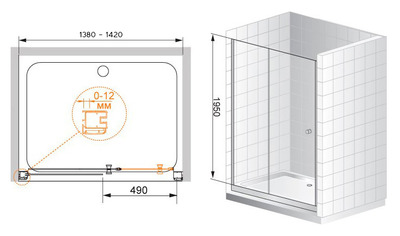 Тип дверей: одна раздвижная секция с одним неподвижным стеклом.