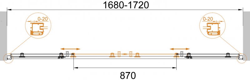 Тип дверей: одна раздвижная секция с одним неподвижным стеклом.