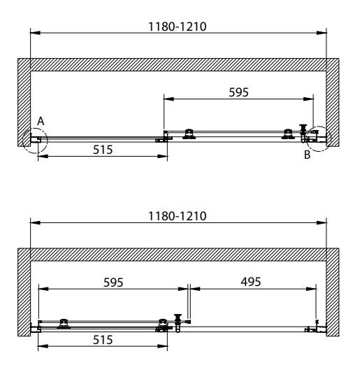 Габариты с диапазоном регулировок, мм: (1180-1210)х1900, Ширина входа, мм: 495
