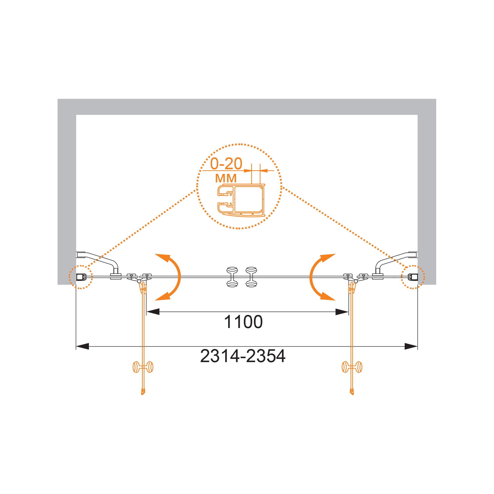 Душевая дверь Cezares Elena 240x195 стекло матовое рифленое, профиль хром (ELENA-W-B-22-240-P-Cr)