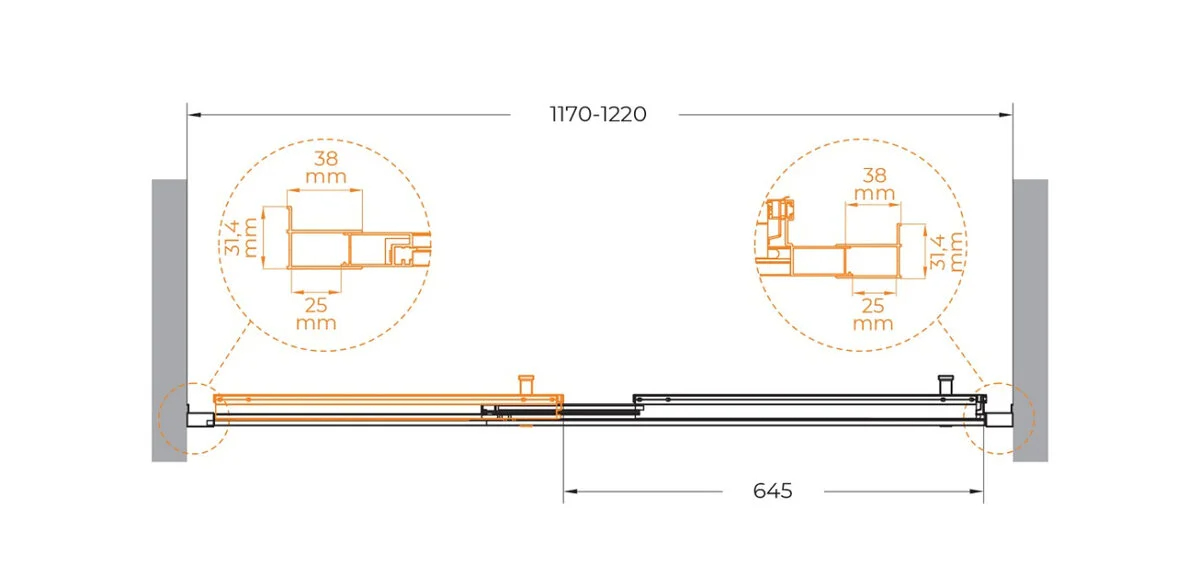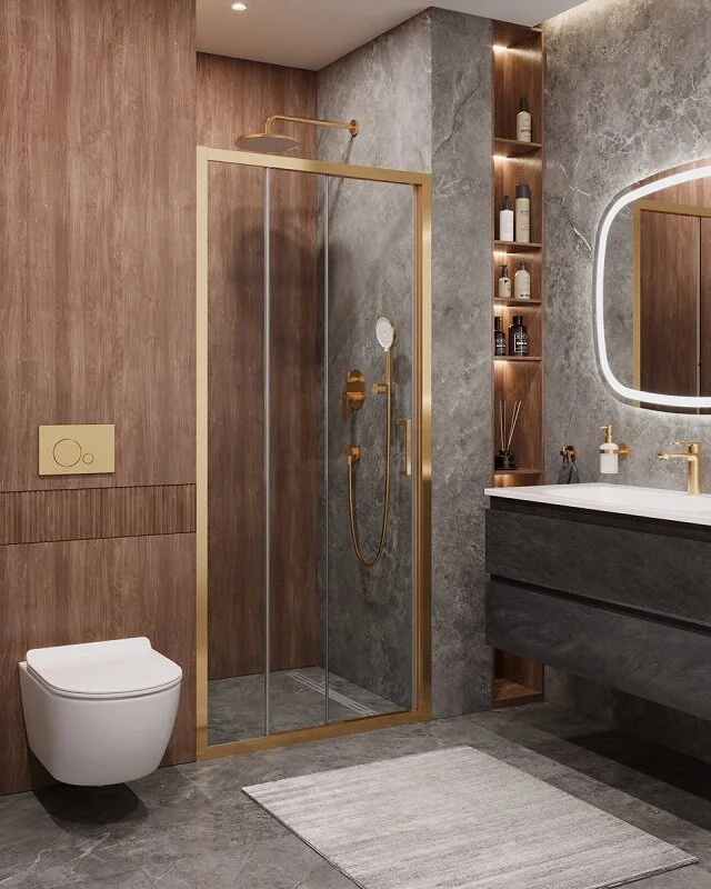 Душевая дверь Cezares Molveno 120x195 стекло прозрачное, профиль брашированное золото (MOLVENO-BF-3-120-C-BORO-IV)