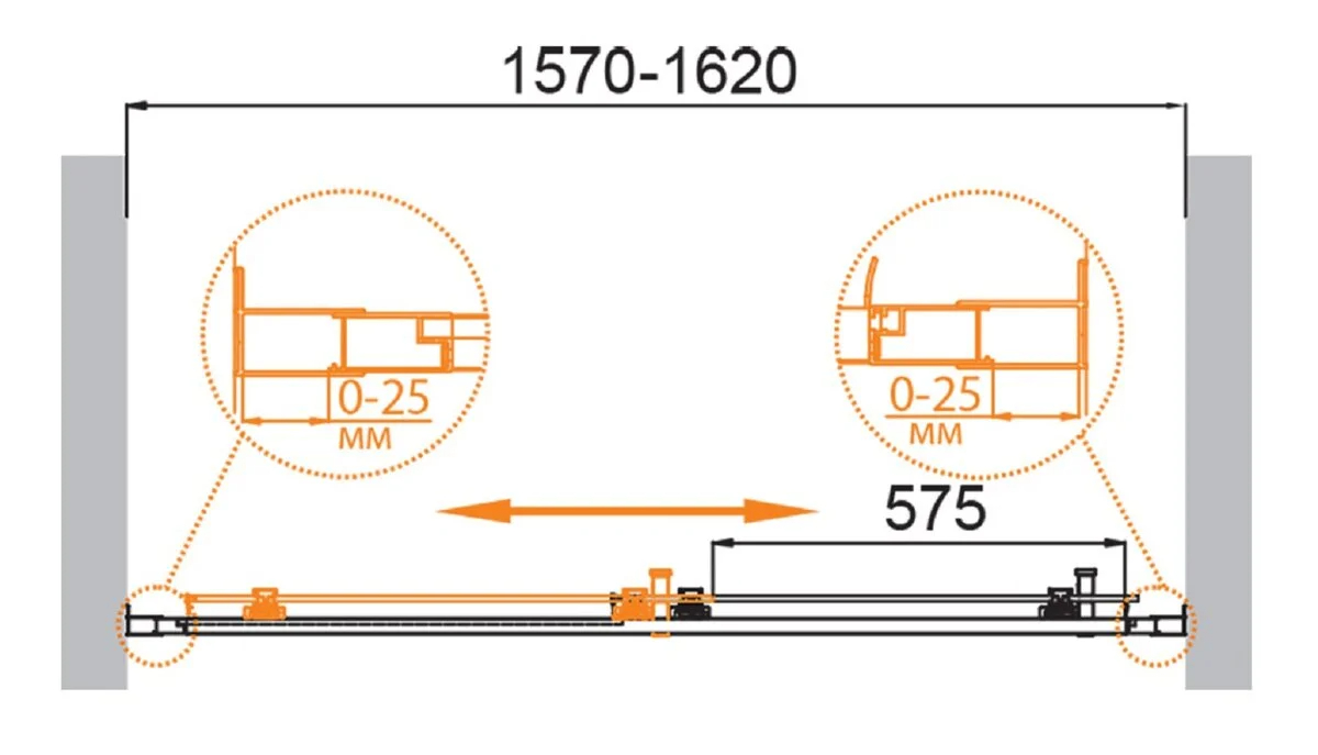 Душевая дверь Cezares Molveno 160x195 стекло прозрачное, профиль оружейная сталь (MOLVENO-BF-1-160-C-GM-IV)