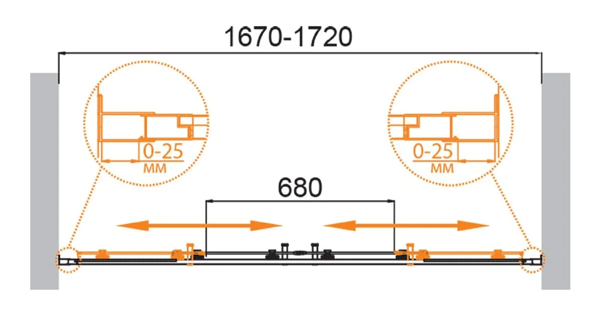 Душевая дверь Cezares Molveno 170x195 стекло прозрачное, профиль оружейная сталь (MOLVENO-BF-2-170-C-GM-IV)