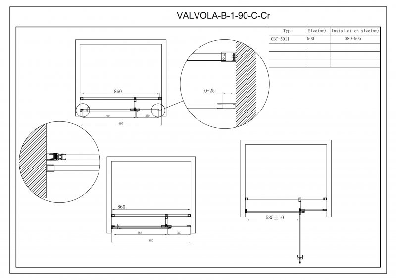 Габариты с диапазоном регулировок, мм: (890-915)х1950, Ширина входа, мм: 585