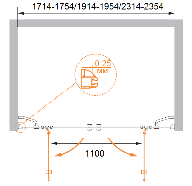 Душевая дверь Cezares Verona 180x195 стекло прозрачное, профиль хром (VERONA-W-B-22-180-C-Cr)