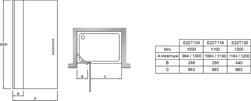 Душевая дверь Jacob Delafon Contra 100x200 стекло прозрачное, профиль хром (E22T100-GA)