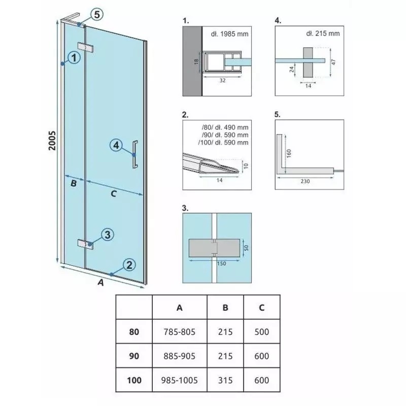 Душевая дверь Rea Hugo 80x200 стекло прозрачное, профиль золото матовое (REA-K8410)