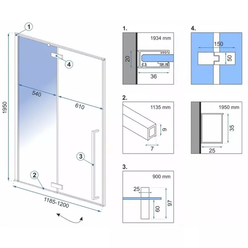 Душевая дверь Rea Rapid 120x195 стекло прозрачное, профиль чёрный (REA-K6328)