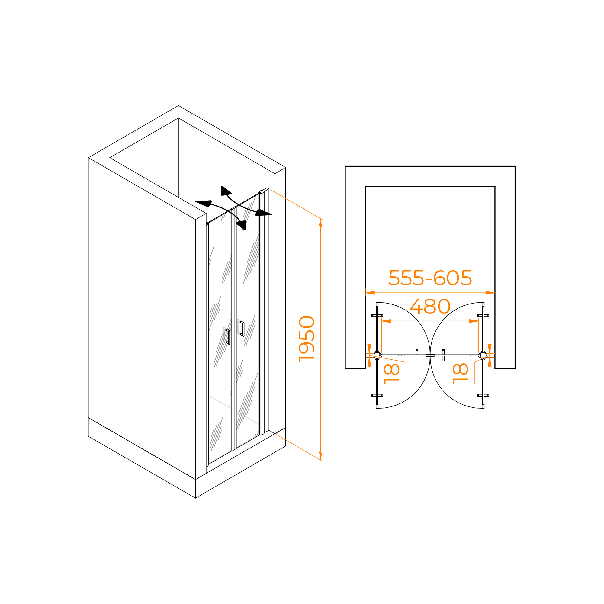 Душевая дверь RGW 60x195 стекло прозрачное, профиль черный (060810406-14)