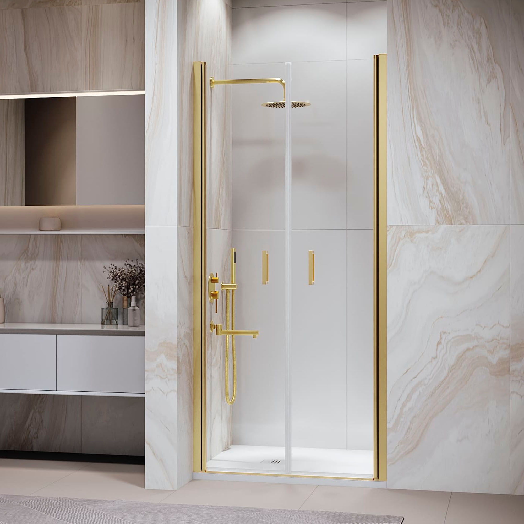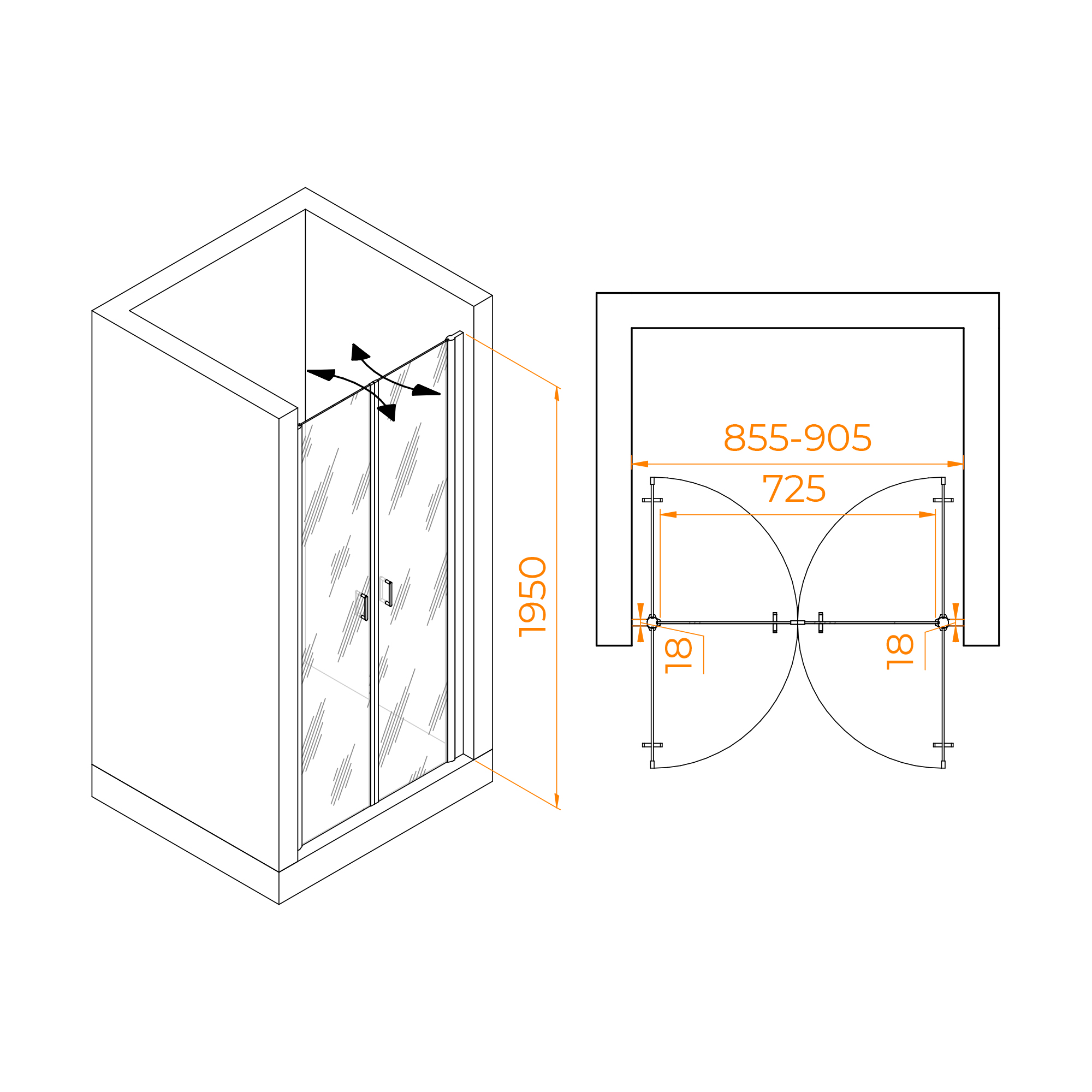 Двух створчатая маятниковая душевая дверь PA-104 с механизмом Gravity Loop.