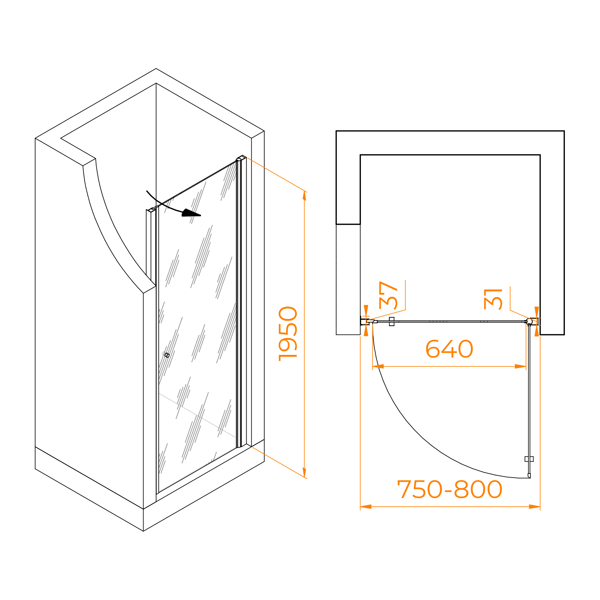 Душевая дверь RGW Dolphin 80x195 стекло прозрачное, профиль черный (54930308-14)