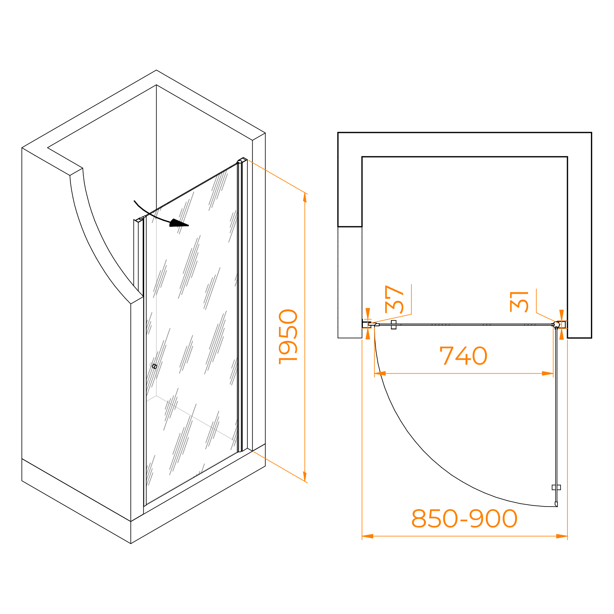 Душевая дверь RGW Dolphin 90x195 стекло прозрачное, профиль хром (54930309-11)