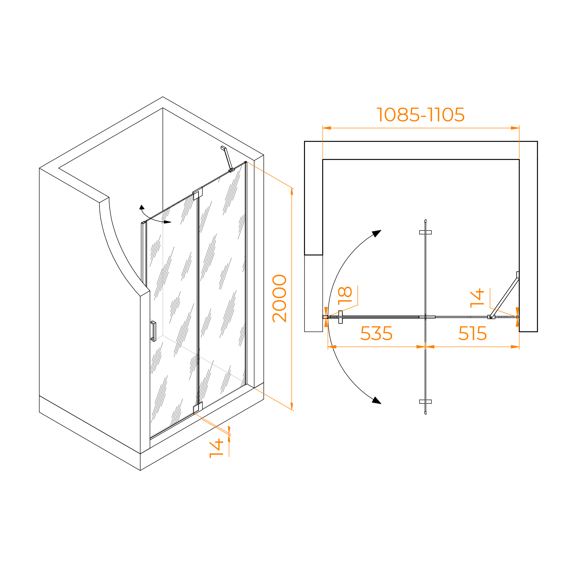 Душевая дверь RGW Hotel 110x200 стекло матовое-сатинат, профиль черный (350601411-24)