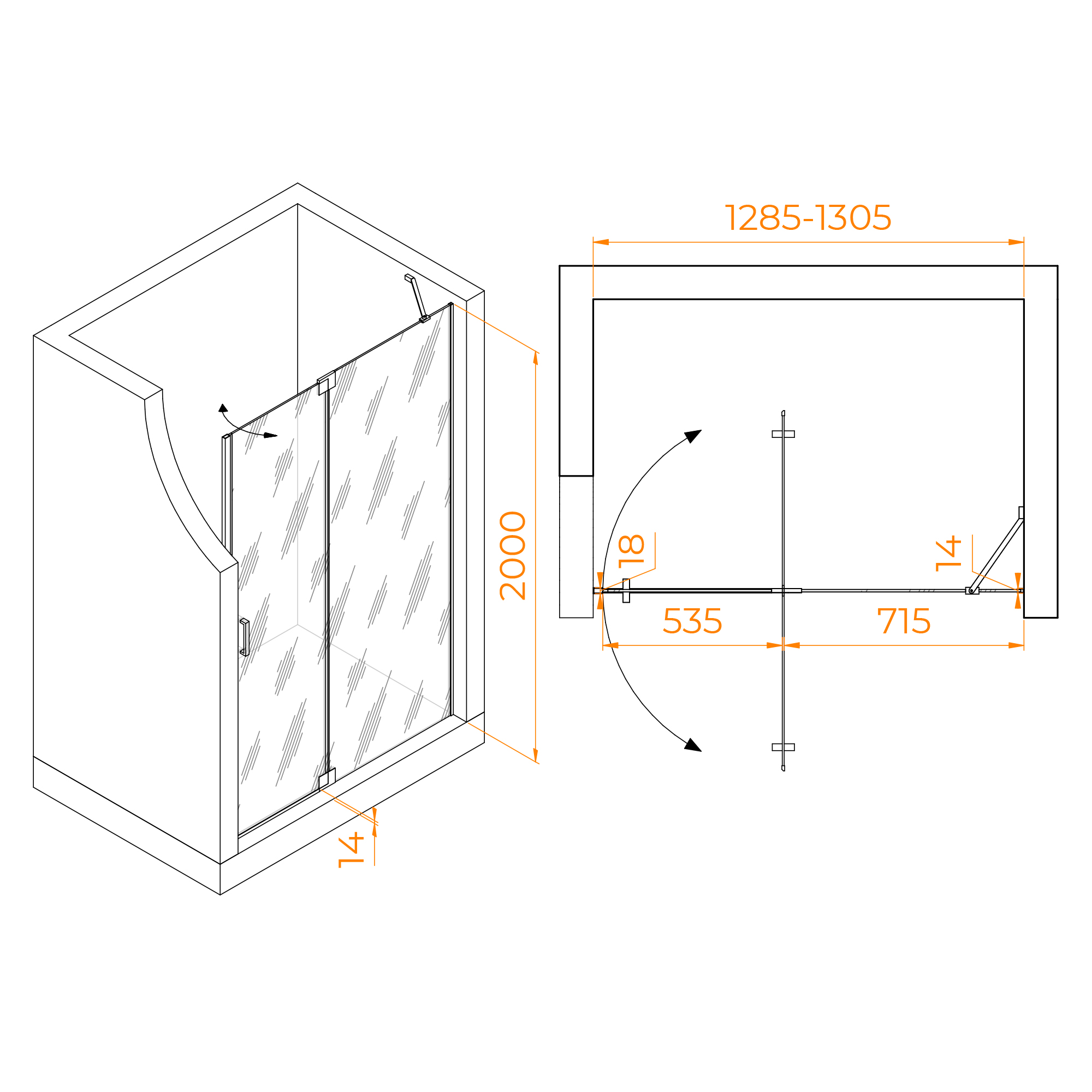 Душевая дверь RGW Hotel 130x200 стекло прозрачное, профиль черный (350601413-14)