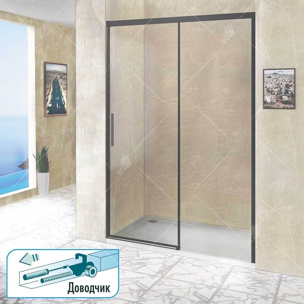 Душевая дверь с закаленным прозрачным стеклом 6 мм, с роликовым механизмом оснащенные автодоводчиком.
