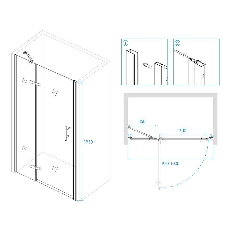 Душевая дверь RGW PA-07 B "L" 1000*1950 стекло прозрачное, профиль черный (41080710-84L)