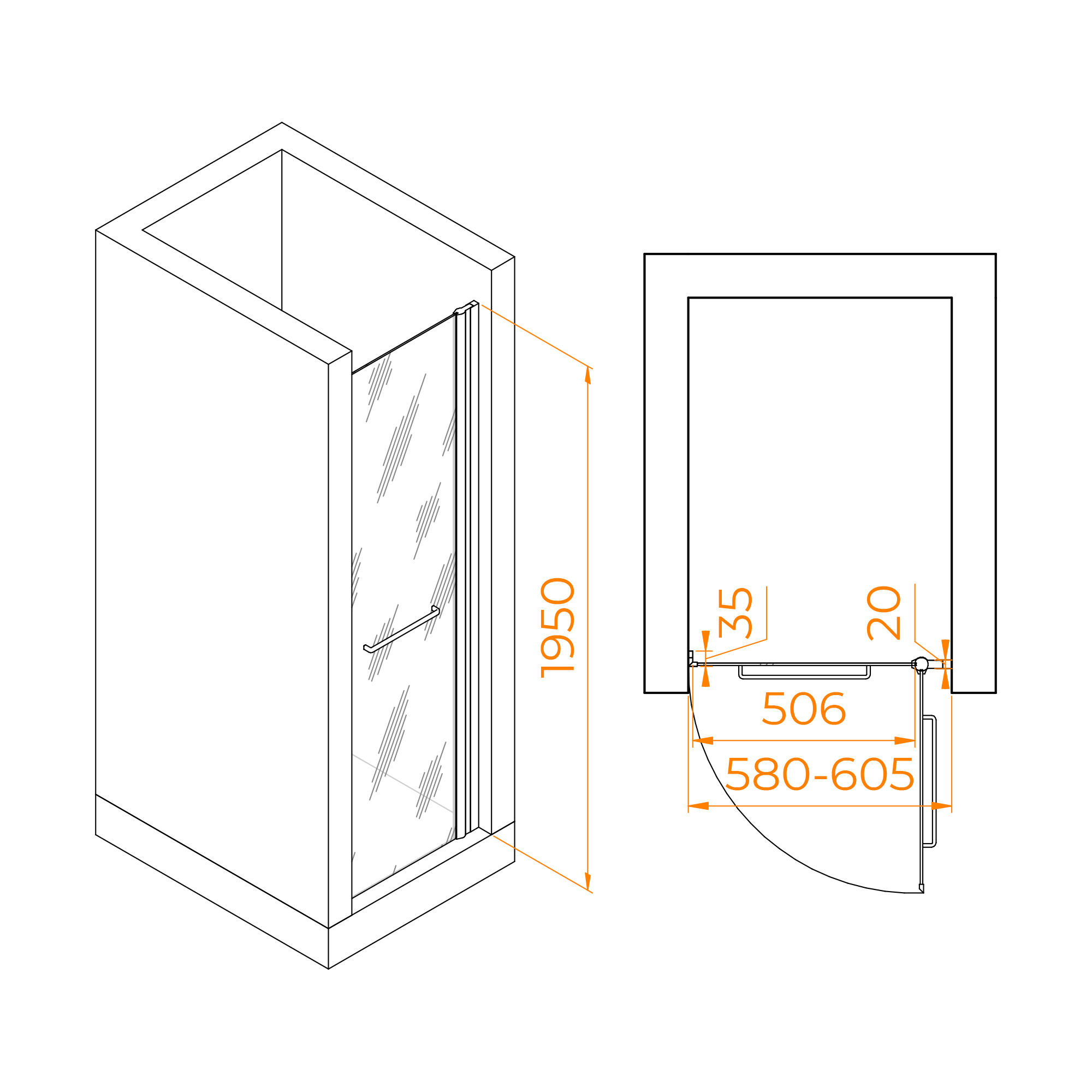 Душевая дверь RGW PA-103 60x195 стекло прозрачное, профиль хром (02081306-21c)