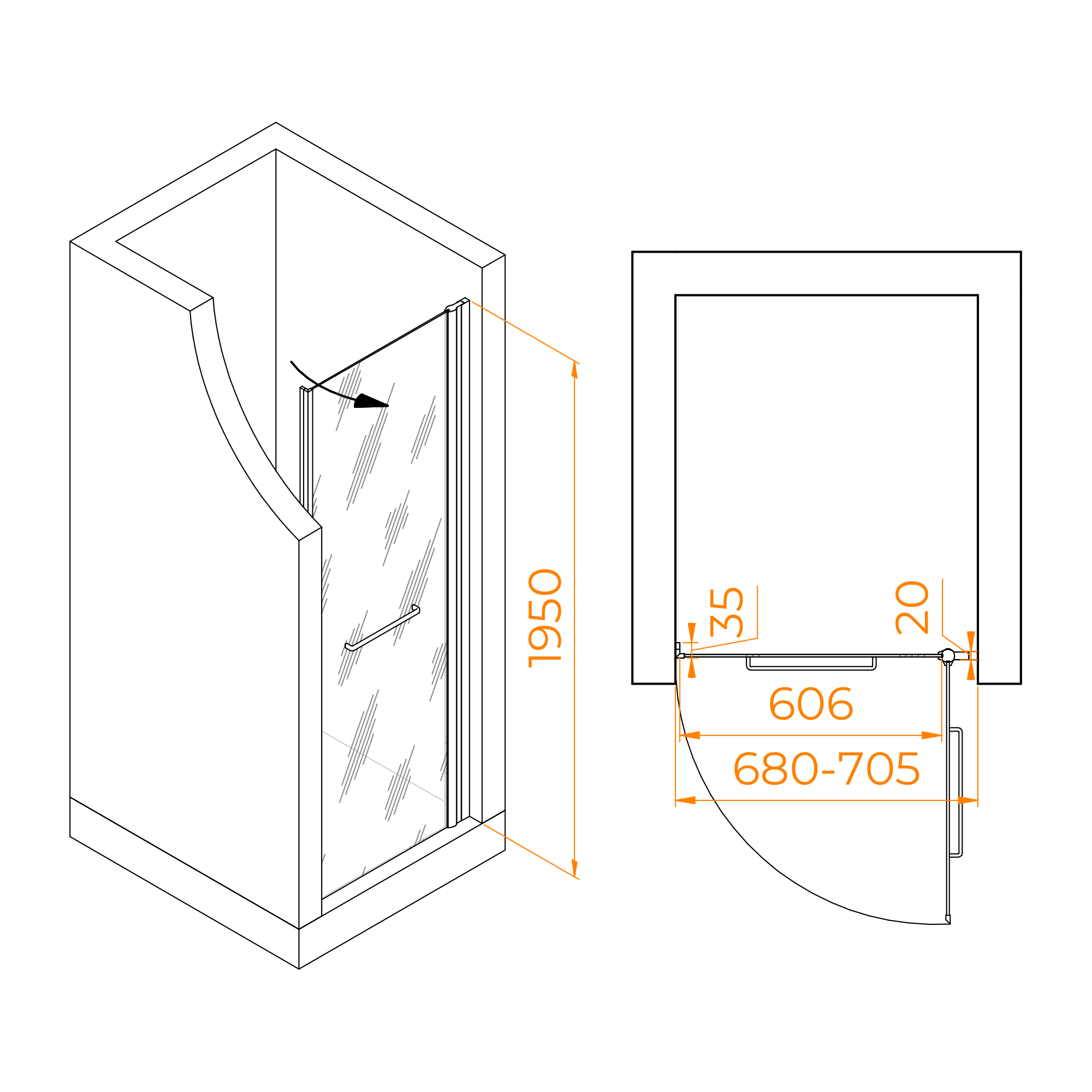 Душевая дверь RGW PA-103-B 70x195 стекло прозрачное, профиль черный (02081307-24c)