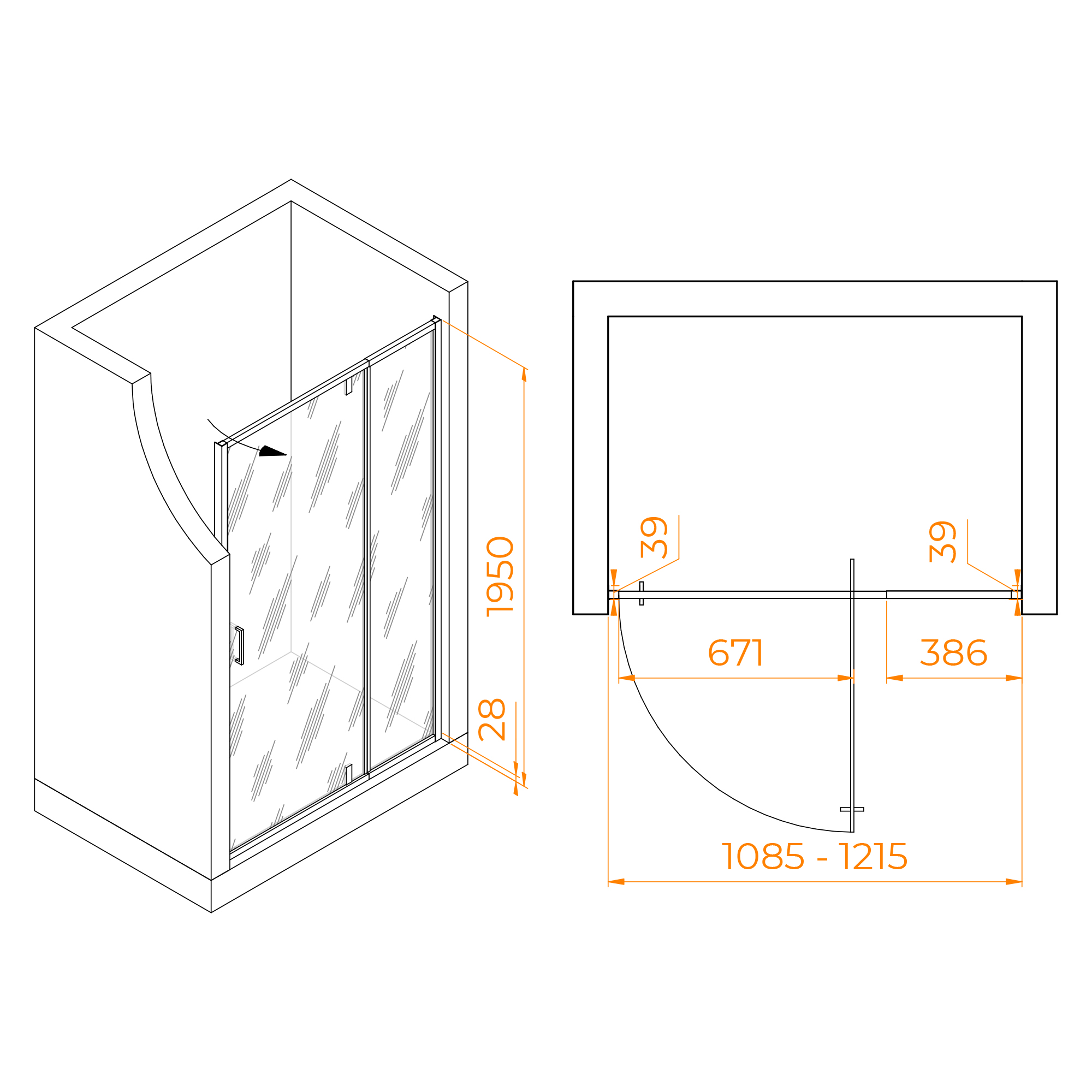 Душевая дверь RGW Passage 1100x1950 стекло матовое-сатинат, профиль хром (350800812-11)