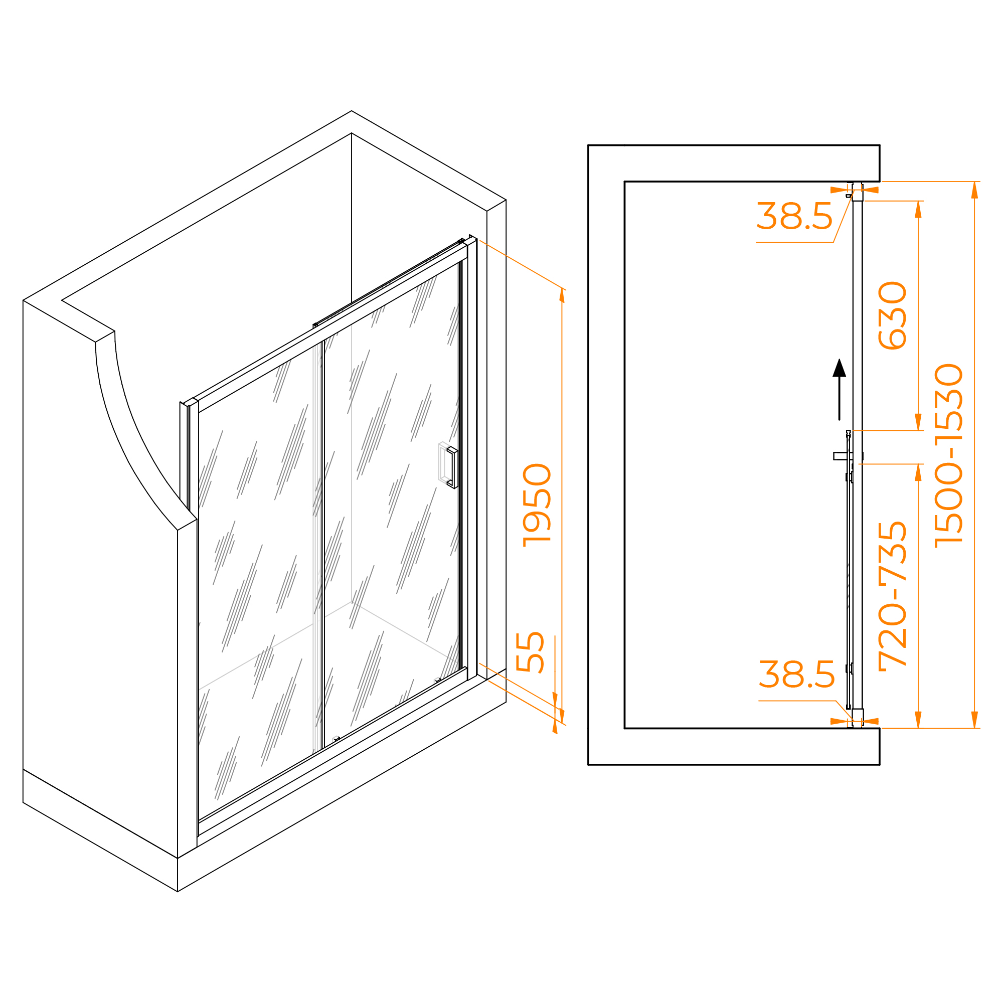 Душевая дверь RGW Passage 150x195 стекло прозрачное, профиль черный (350801615-14)
