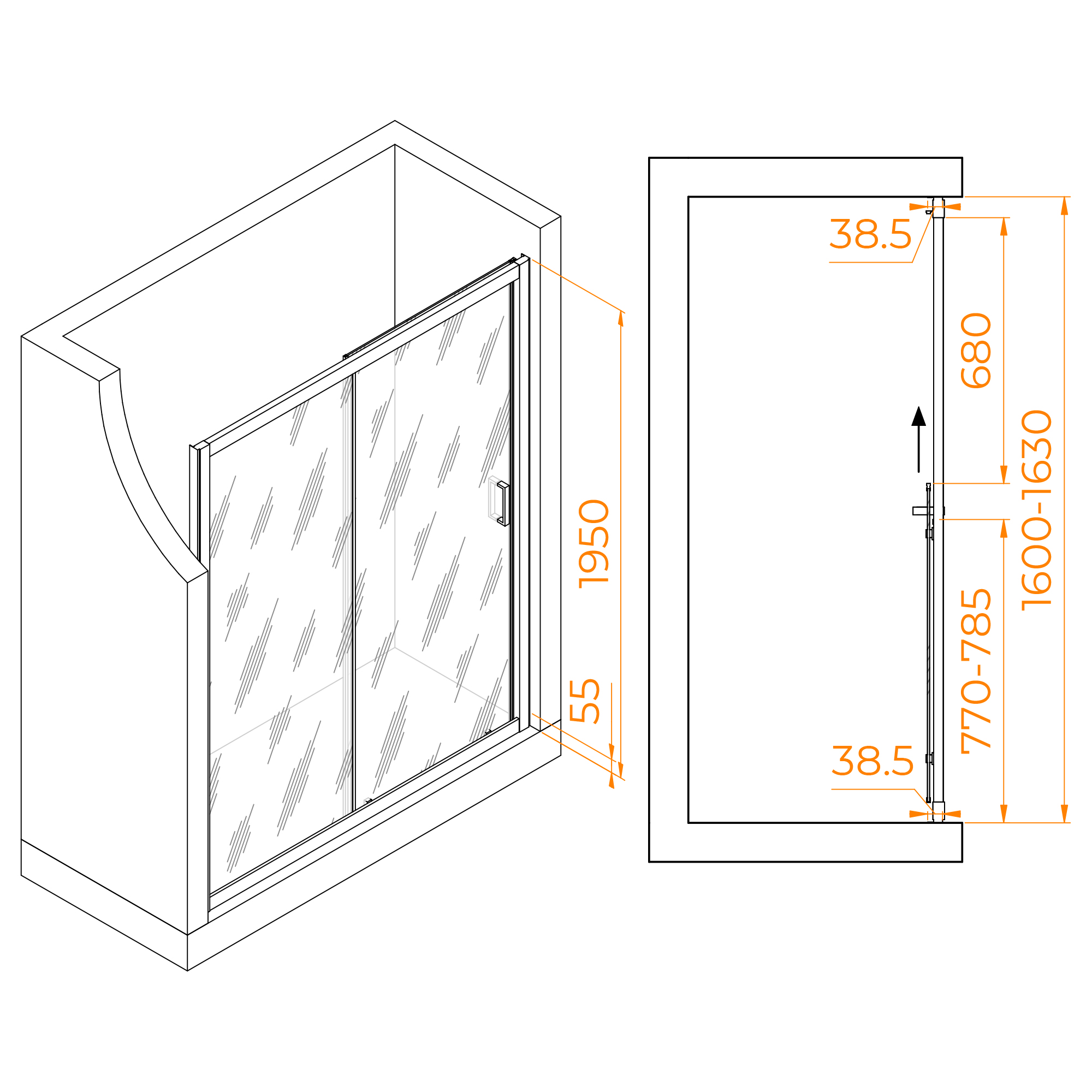 Душевая дверь RGW Passage 160x195 стекло прозрачное, профиль хром (350801616-11)