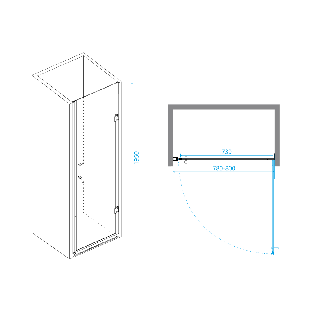 При общей высоте 1950 мм эта душевая дверь предлагает достаточно места для большинства людей. Класс герметичности 2 еще больше увеличивает его функциональность, обеспечивая дополнительный уровень защиты от любой утечки воды. Распашная дверца обеспечивает легкий доступ и добавляет удобство в ежедневную рутину принятия душа.