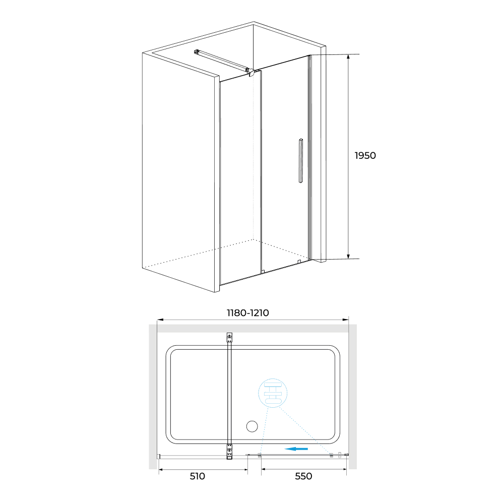 Душевая дверь RGW Tornado 120x195 стекло прозрачное, профиль черный (41071812-14)