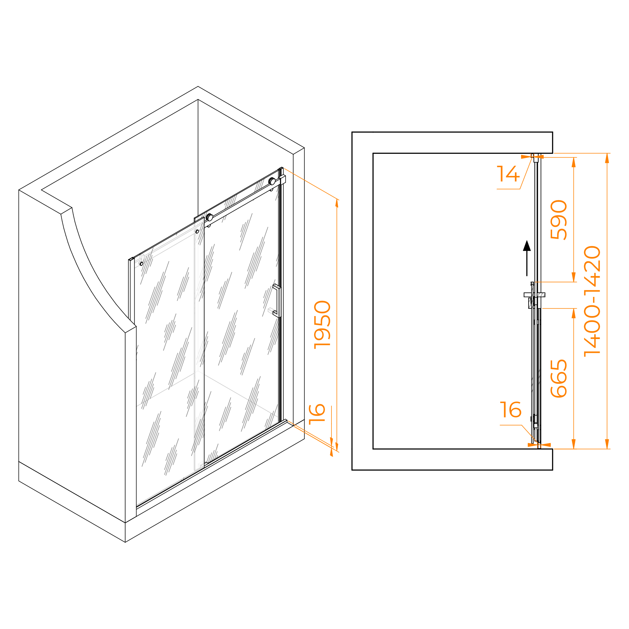 Душевая дверь RGW Tornado 140x195 стекло прозрачное, профиль черный (02071414-14)