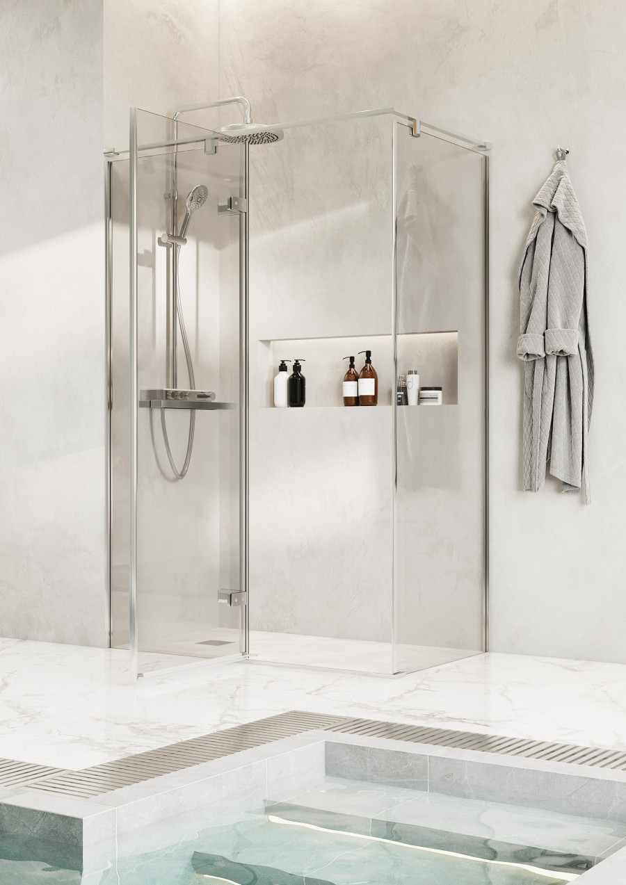 Уникальный стиль новой коллекции душевых ограждений Roca ACROPOLIS прослеживается в каждой детали. Элегантные петли с фасками, удобные ручки и плоский верхний профиль создают неповторимый дизайн душевого пространства. Тонкий стальной профиль визуально облегчает конструкцию душевого ограждения, но при этом остается надежным и очень прочным. Безупречное сопряжение всех элементов ограждения делает душевое пространство красивым и по-настоящему комфортным в использовании. Расширение пристенного профиля до 5 мм позволит компенсировать неровности стен. Ограждение выполнено из безопасного закаленного стекла толщиной 8 мм. Покрытие Maxiclean отталкивает капли воды, не давая им засыхать на поверхности стекла, благодаря чему ухаживать за ограждением значительно проще.