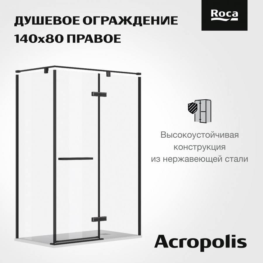 Душевая дверь Roca Akropolis 120x90x200 R стекло прозрачное, профиль черный матовый (Z.RU93.0.790.3)