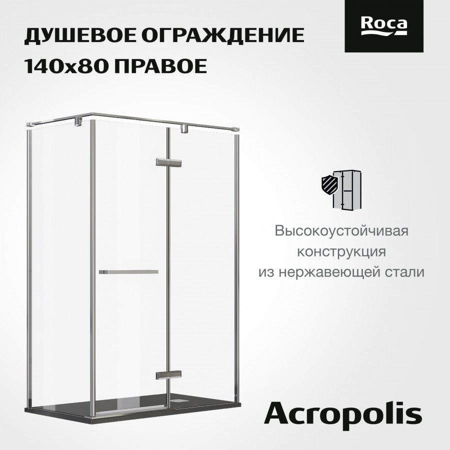 Уникальный стиль новой коллекции душевых ограждений Roca ACROPOLIS прослеживается в каждой детали. Элегантные петли с фасками, удобные ручки и плоский верхний профиль создают неповторимый дизайн душевого пространства. Тонкий стальной профиль визуально облегчает конструкцию душевого ограждения, но при этом остается надежным и очень прочным. Безупречное сопряжение всех элементов ограждения делает душевое пространство красивым и по-настоящему комфортным в использовании. Расширение пристенного профиля до 5 мм позволит компенсировать неровности стен. Ограждение выполнено из безопасного закаленного стекла толщиной 8 мм. Покрытие Maxiclean отталкивает капли воды, не давая им засыхать на поверхности стекла, благодаря чему ухаживать за ограждением значительно проще.