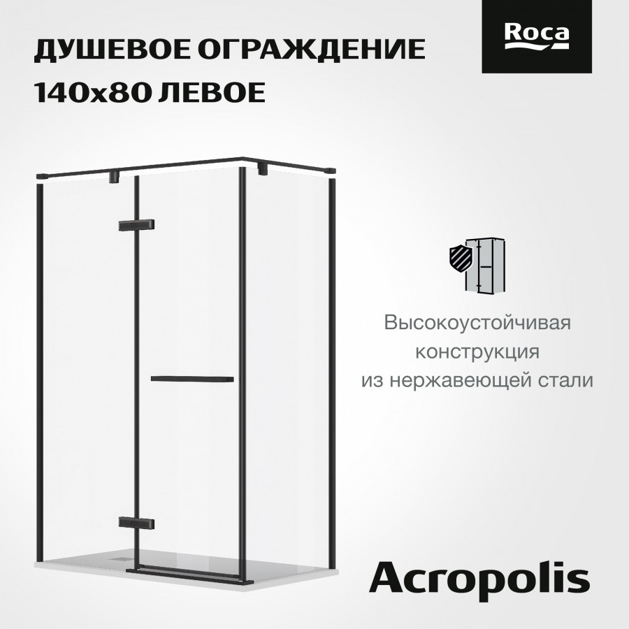 Душевая дверь Roca Akropolis 140x70x200 L стекло прозрачное, профиль черный матовый (Z.RU93.0.788.6)