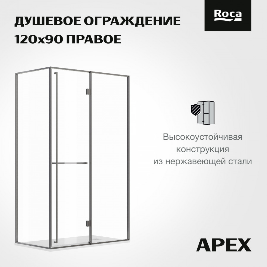 Душевая дверь Roca Apex 120x90x200 R стекло прозрачное, профиль оружейная сталь (Z.RU93.0.789.9)