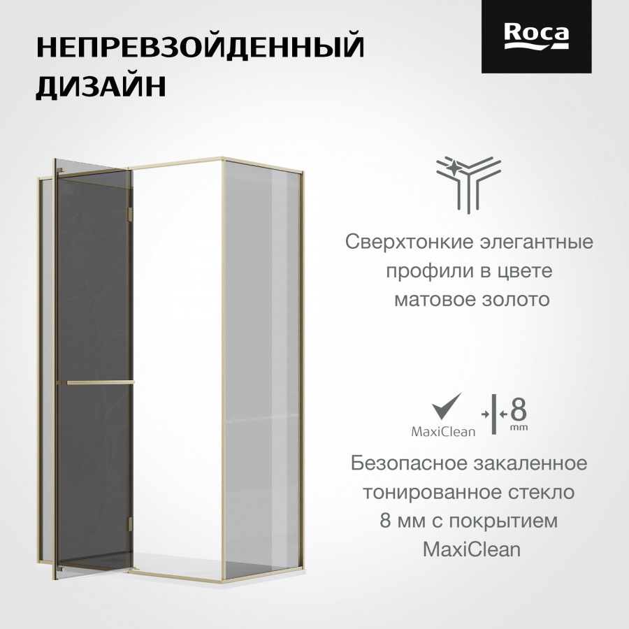 Душевая дверь Roca Apex 140x80x200 L стекло тонированное, профиль золото матовое (Z.RU93.0.787.9)