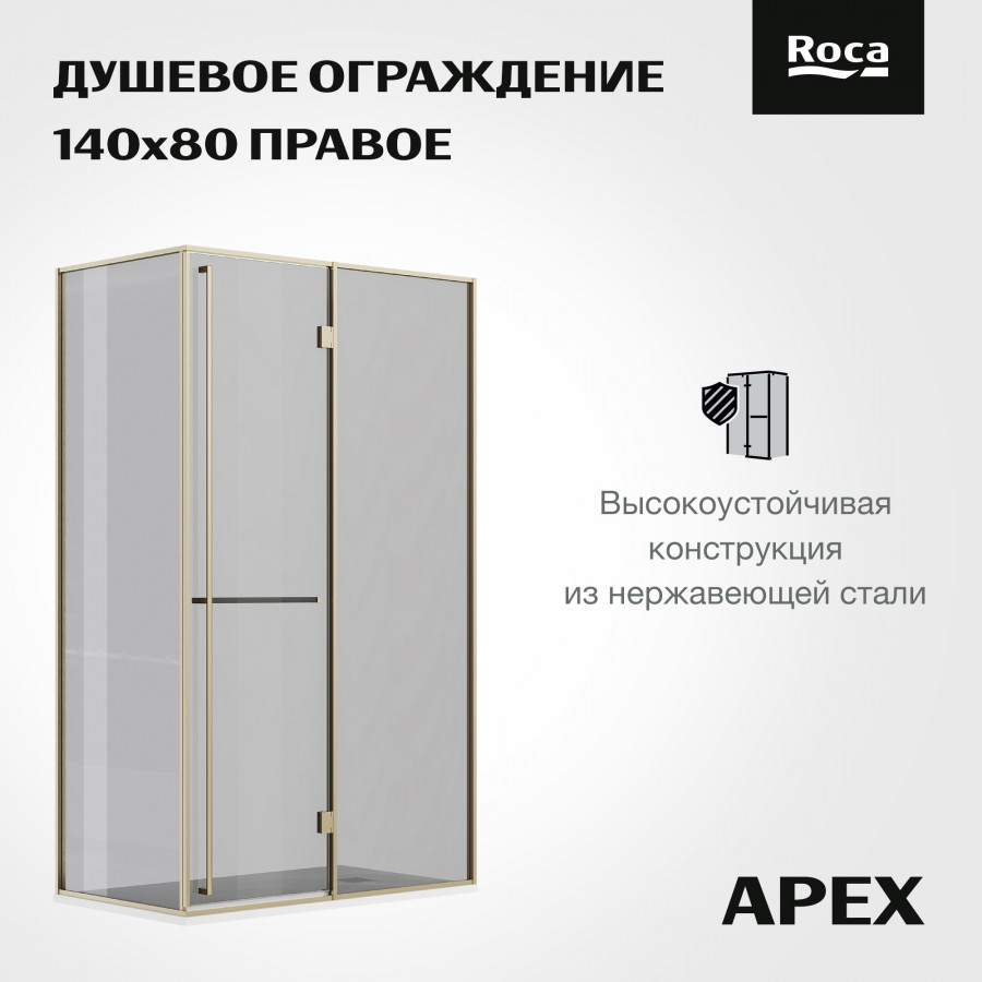 Душевая дверь Roca Apex 140x80x200 R стекло тонированное, профиль золото матовое (Z.RU93.0.789.1)