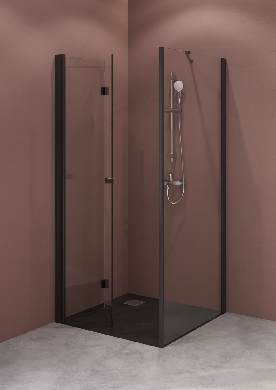 Безопасное закаленное стекло 6мм с покрытием MaxiClean Металлические петли - черный Алюминиевые черные профили Уплотнители высокого качества Черные ручки Возможен монтаж без душевого поддона В случае монтажа двери в нишу необходим пристенный профиль с магнитным уплотнителем, артикул: AM48195060-черный - заказывается отдельно. При использовании профиля AM48195060 дверь открывается только наружу.