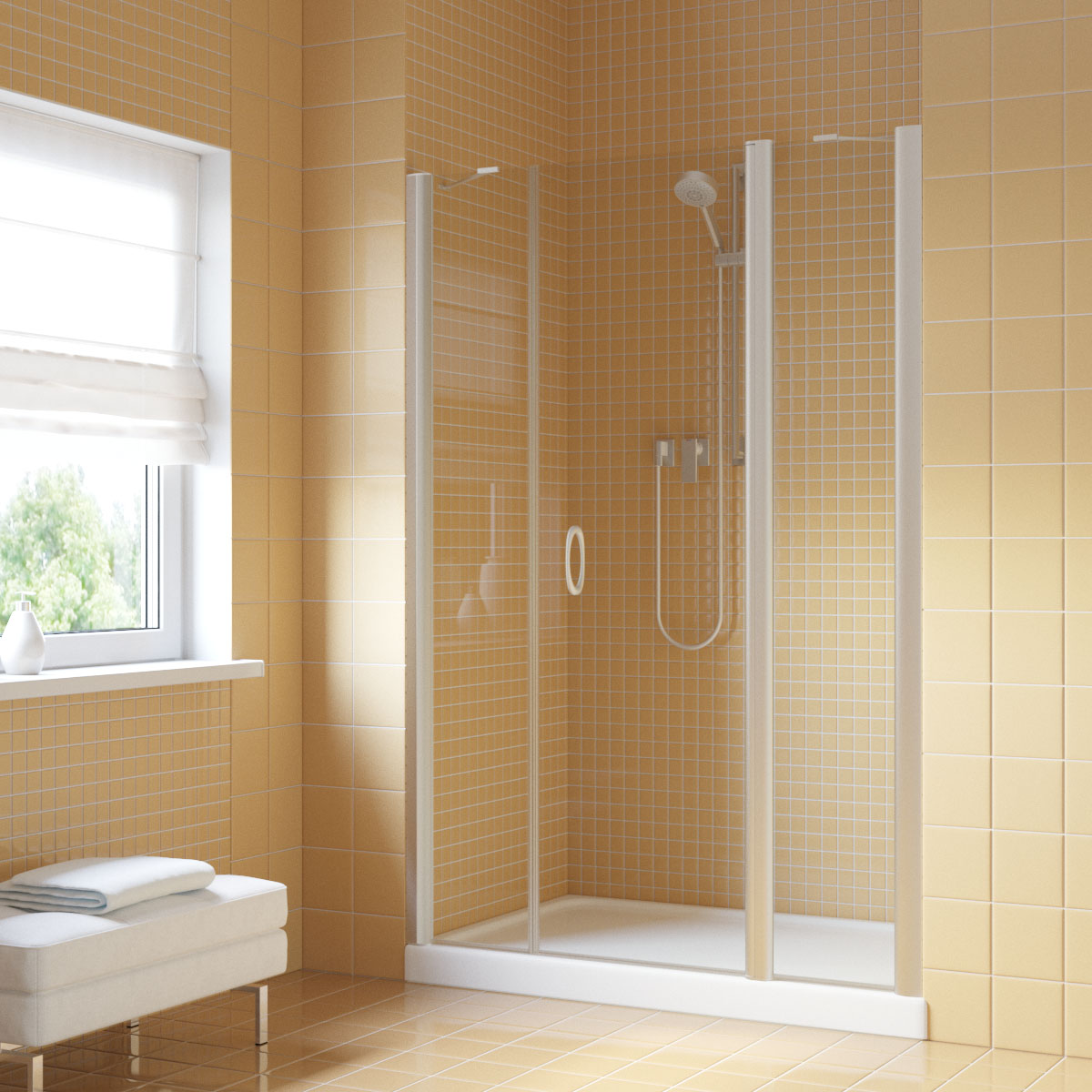 Одностворчатая распашная душевая дверь Vegas Glass (Вегас Глас) EP-2F 185х190 см с двумя неподвижными элементами.