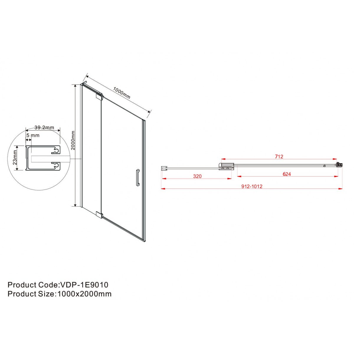 Душевая дверь Vincea Extra VDP-1E 900/1000х2000 стекло прозрачное, профиль черный (VDP-1E9010CLB)