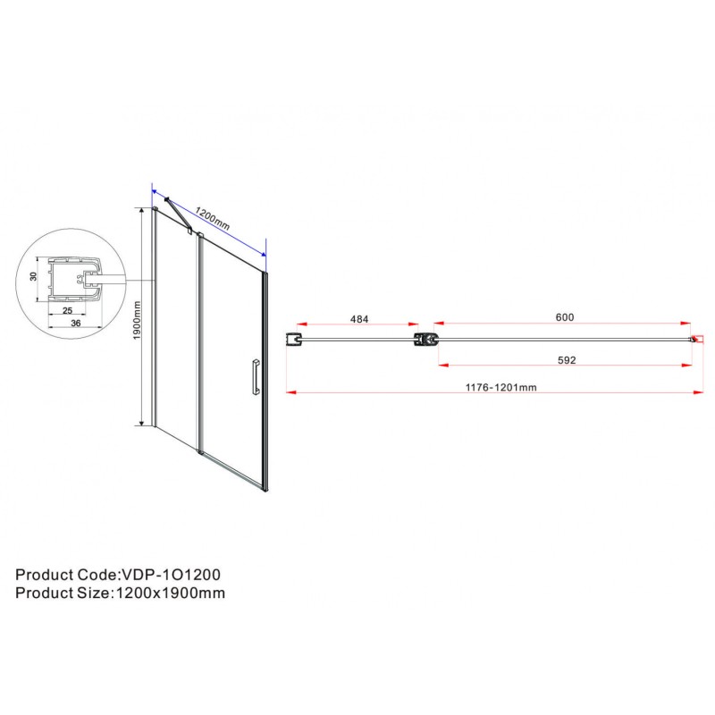 Душевая дверь Vincea Orta 1200х1900 стекло прозрачное, профиль хром (VPP-1O120CL)