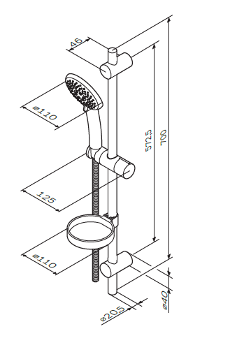 - Душевая штанга высотой 70 см. Регулируемые крепления.