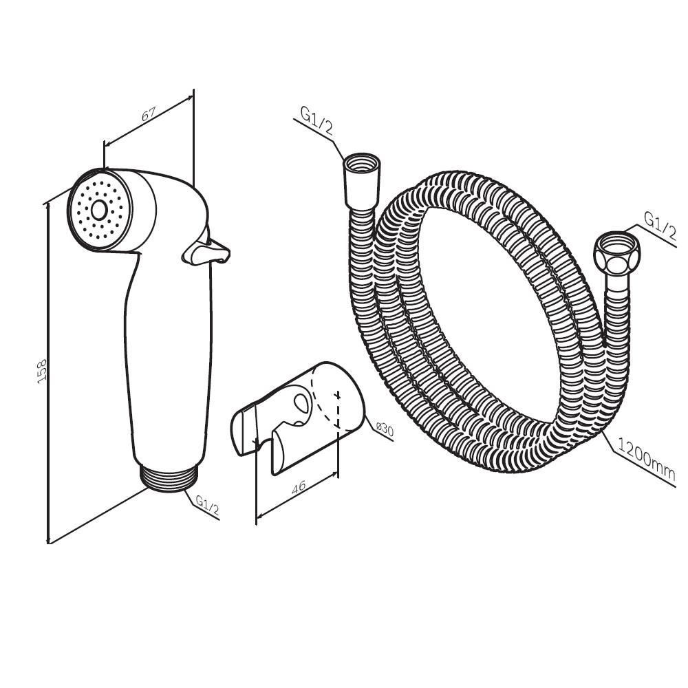 Гигиеническая лейка в комплекте с шланговым подсоединением-держателем и шлангом.