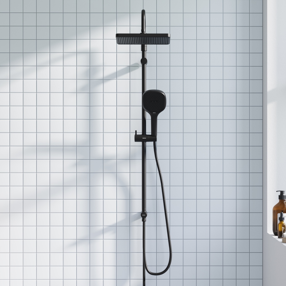Чистые геометричные линии душевой системы Merkur в сочетании с черным матовым покрытием идеально впишутся в интерьер современной ванной комнаты в скандинавском стиле. Несмотря на минималистичный дизайн душевые системы этой серии отличаются широким функционалом и необычайной эргономичностью.
