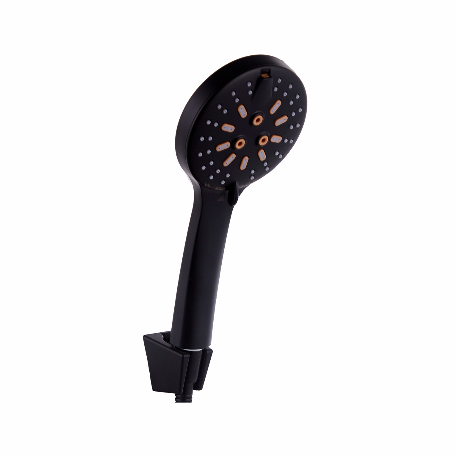 лейка круглая D=118 мм, 5 режимов, переключение поворотом диска излива, ABS пластик крашенный в массе, чёрный