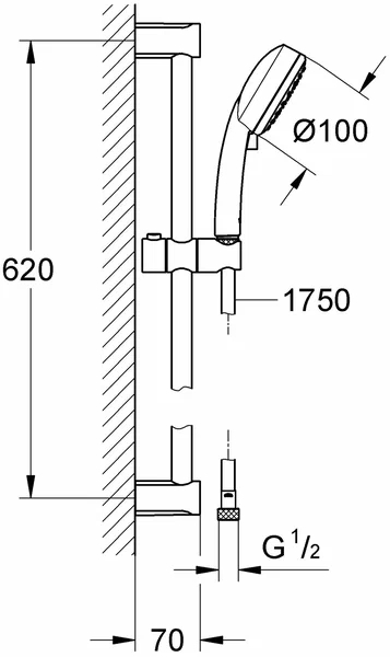 Комплектация: ручной душ, держатель для ручного душа, душевой шланг, душевая стойка