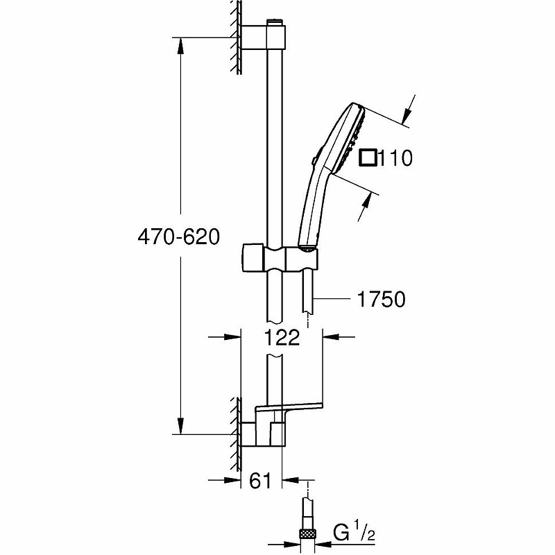 Комплектация: ручной душ, держатель для ручного душа, душевой шланг, душевая стойка