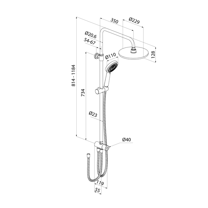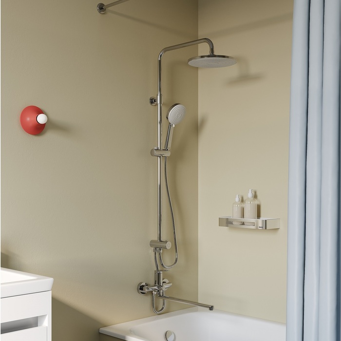 Лейки АВС пластик, ручная лейка 3 режима, шланг сталь, стойка сталь, дивертор поворотный, цвет - хром.
